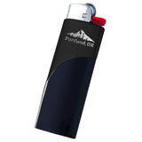 Kasher PORTLAND comes in black and blue, with or without a Bic lighter. Both versions have a distinctive leaf design on the back, while the front features Mount Hood, with different fonts below which say either "Portland, OR" or "Portland, Oregon". Engraving choices come as shown only on the pictured color.