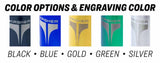 These prices include a $25 artwork fee and $15 engraving set-up fee. Keep reading to see how to save the $25 artwork fee. If you are placing a re-order and using the same artwork, please contact us and we will waive the artwork fee (we will send you an invoice via PayPal or Quickbooks to be paid easily online). Also, if you have engraving ready art (one color vector file), we will waive the $25 artwork fee - please use the link above to contact us with your art and order details.